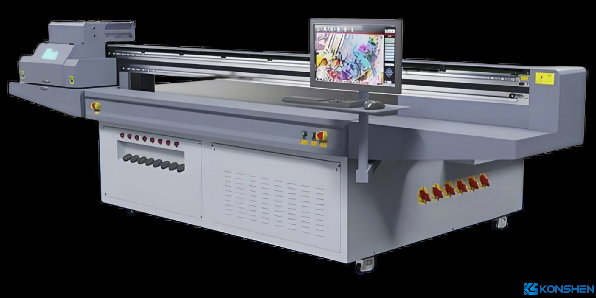 Vacuum platforms stabilize glass positioning during printing, while servo-driven motion control systems ensure accurate printhead movement, especially critical for multilayer printing and large-format applications. Ink supply systems maintain stable pressure and flow to minimize clogging risks. RIP and control software handle image processing, color management, white ink layering, and special effects, forming the backbone of high-quality UV printing.