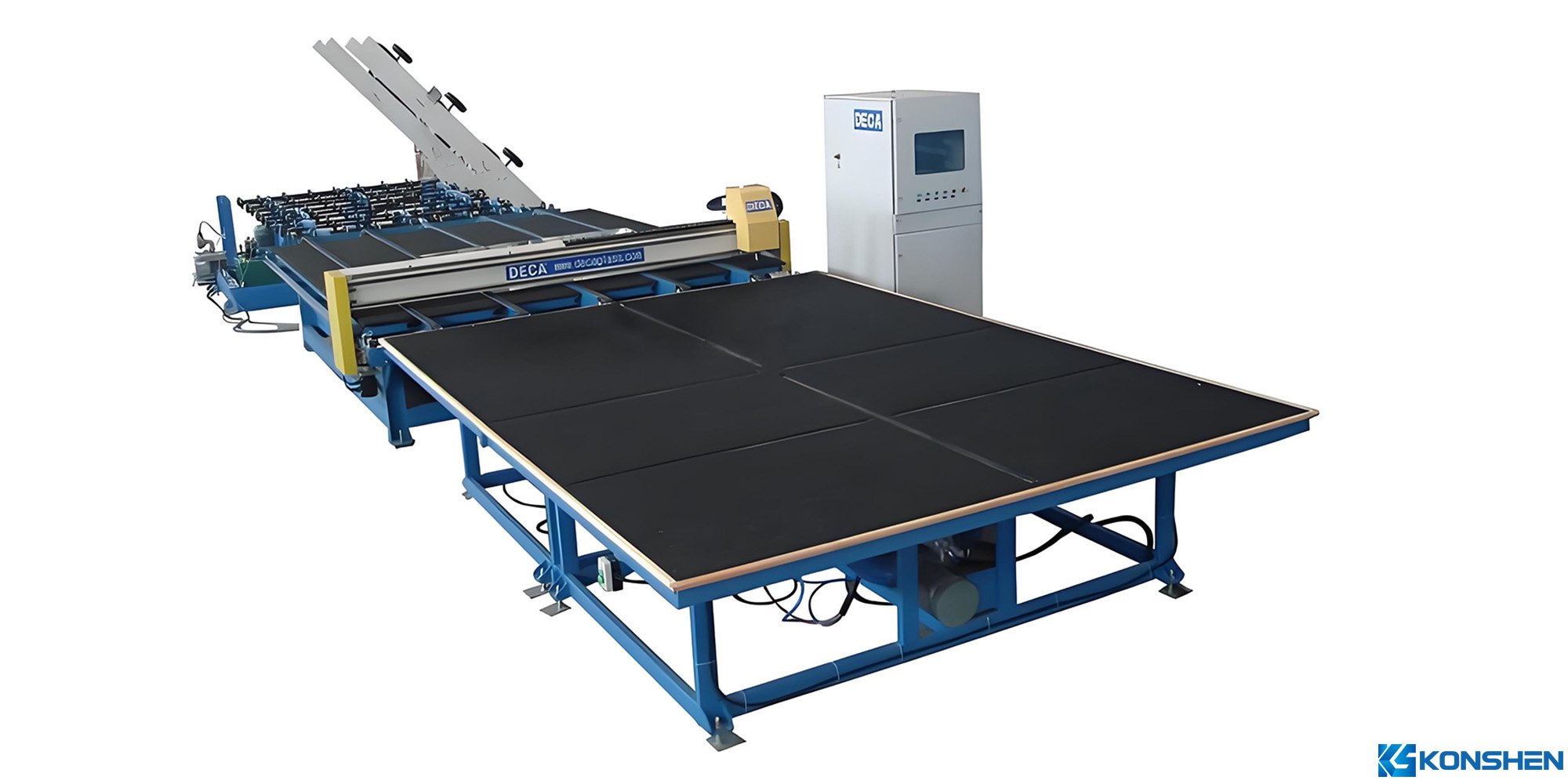 The cutting table often includes vacuum suction or mechanical clamps to stabilize the glass and prevent vibration or movement during processing.